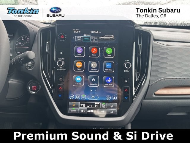 - Radio: Subaru 11.6" Multimedia Plus System -inc: valet mode, integrated center information display, AM/FM stereo HD Radio, multi-touch gesture high resolution display screen, voice activated controls, Bluetooth® audio streaming and hands-free phone connectivity w/SMS text messaging (refer to Subaru.com for cellphone compatibility), iPod control capability, smartphone integration: Android Auto and Apple CarPlay w/full screen view and wireless connection, USB and Over The Air (OTA) audio system update, steering wheel controls, 6 speakers, 3.5mm auxiliary input jack and roof mounted audio and satellite antenna