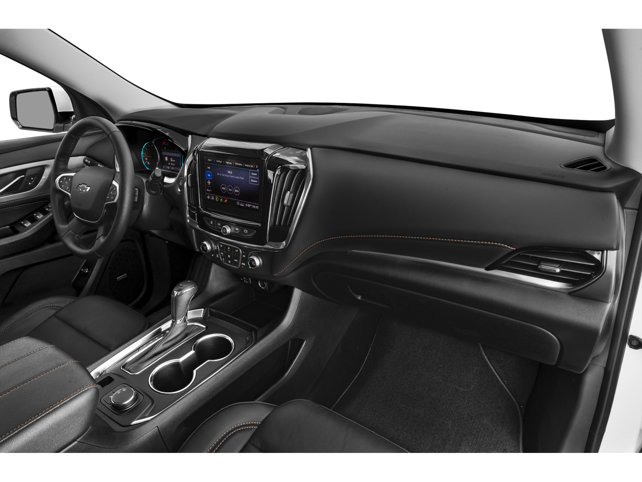 - Audio system, Chevrolet Infotainment System with Navigation and 8" diagonal color touch-screen, AM/FM stereo, includes Bluetooth® streaming audio for music and most phones; featuring Android Auto and Apple CarPlay capability for compatible phones